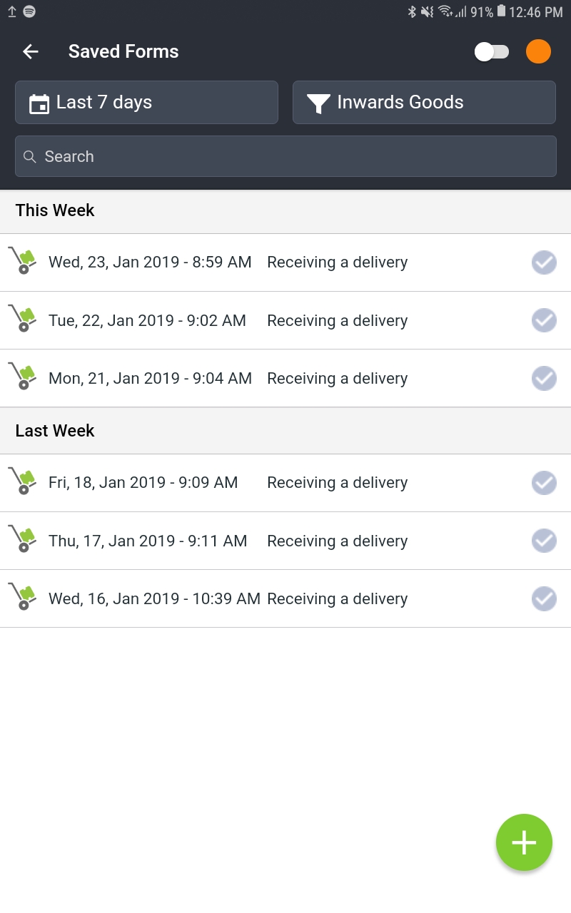 - This will open up the completed delivery forms from the past 7 days. You can edit the date range by selecting the calendar icon in the top left corner.