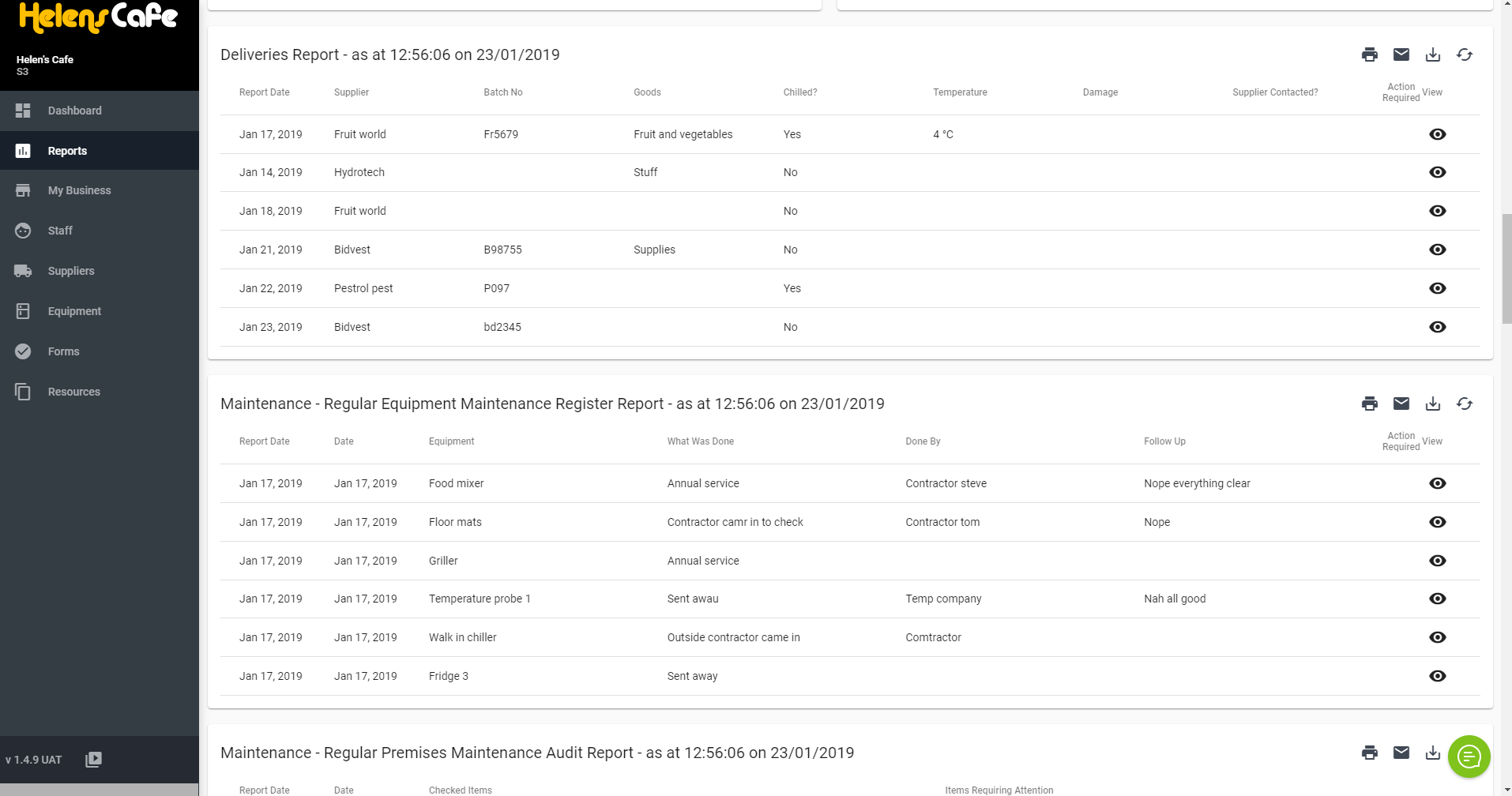 Note: You can also view completed delivery forms on the administration console by going to the 'Completed Forms' page in the reports page. This shows all of your completed forms in your Safe Food Pro.